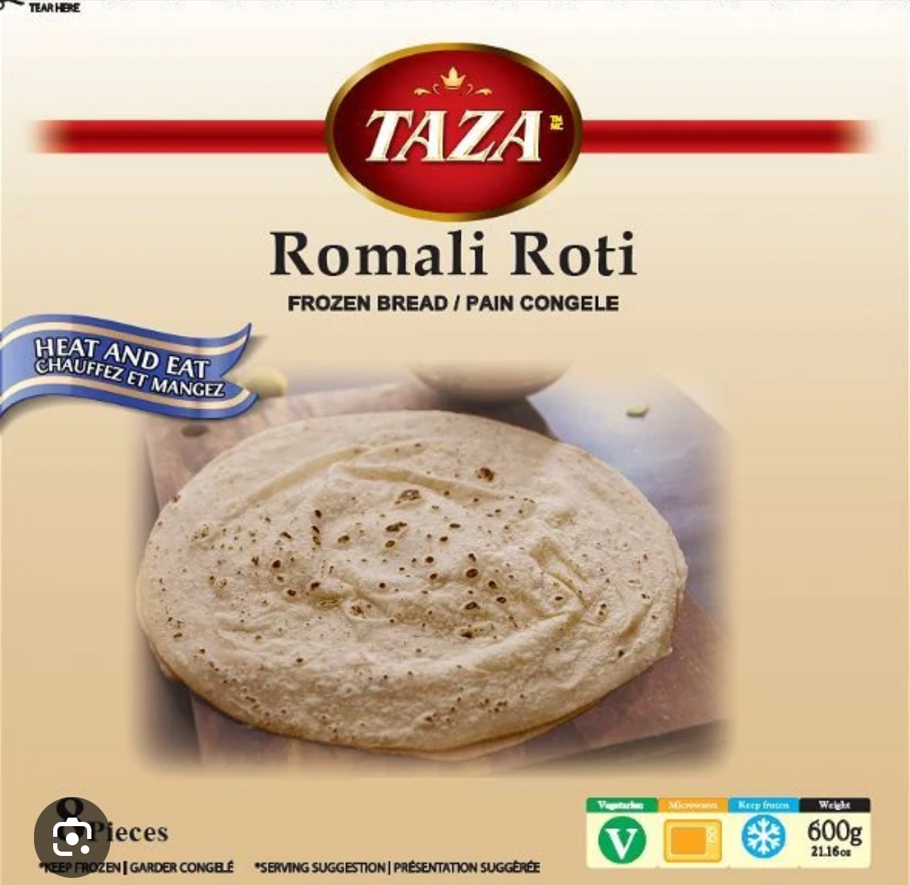 (Frozen) Taza Romali Roti 8pcs X 24pkts 600gms