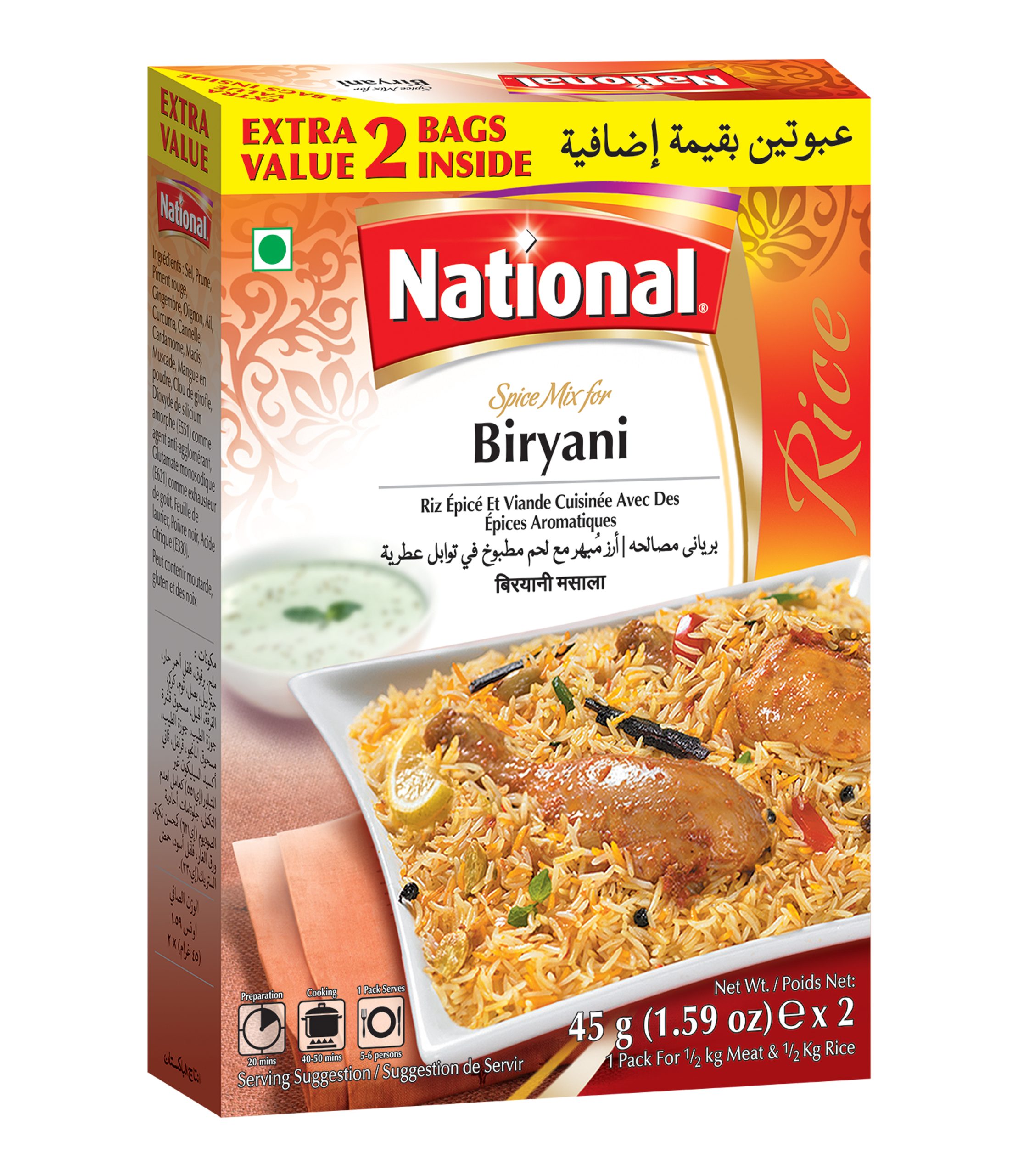 Immerse yourself in the aromatic world of National Biryani Masala. This spice blend is crafted to enhance the taste and aroma of your biryanis, ensuring an indulgent and flavorful experience with every bite.